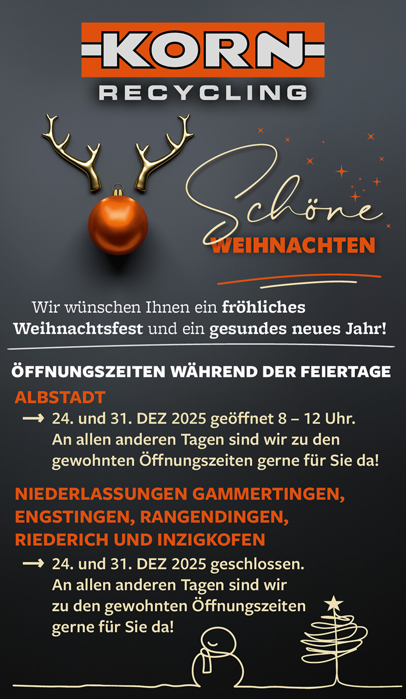KORN ist ein Recyclingunternehmen mit Hauptsitz in Albstadt. Schon seit jeher gelten die Menschen von der Schwäbischen Alb als besonders begabte Tüftler und Erfinder. Berühmte Technikpioniere und Ingenieure stammen von hier. Deshalb verwundert es nicht, das KORN die weltweit modernste Gewerbeabfallsortier- & Ersatzbrennstoffaufbereitungsanlage betreibt. Die Kernkompetenz ist die Entsorgung von Abfall von Industrie-, Gewerbe- und Handelsunter-nehmen, sowie von privaten Haushalten. Ganz besonders das Recycling und die Nutzbarmachung von Abfällen stehen hier im Zentrum ständiger Innovation. So produzieren wir seit 2002 hochwertige Ersatzbrennstoffe für die Energiegewinnung in Kraftwerken.